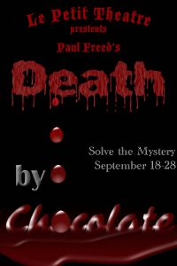 It’s the farce that parodies the health craze, murder mysteries, and our favorite food in Paul Freed’s “Death by Chocolate.” Members of the newly renovated Meadowbrook Health Resort are dropping like flies, including famed chef Edith Chiles! All on the eve of the grand re-opening! It’s up to the delightfully sarcastic and cynical manager, John Stone, to find the cause and the murderer. He teams up with mystery writer and amateur sleuth, Ed Parlor in a wacky race against time. The clues point to a sinister box of chocolates, and the suspects include all the outlandish characters working for the resort. Could it be Lady Riverdale, the owner of the resort, a woman with dark secrets? Ralph Deadwood, the gym instructor and all around cad? Dick Simmering, the areobics instructor? Anne, the panic stricken nurse? “Sweet Pea” Meadowbrook, the eating and greiving daughter of the recently deceased founder of the resort? Or is it one of “the others”? Opening: